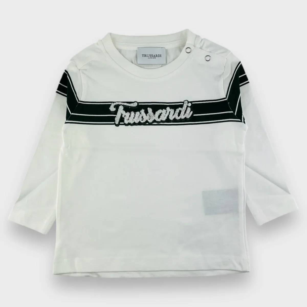 T-shirt TRUSSARDI in cotone manica lunga con stampa a contrasto e logo a rilievo.