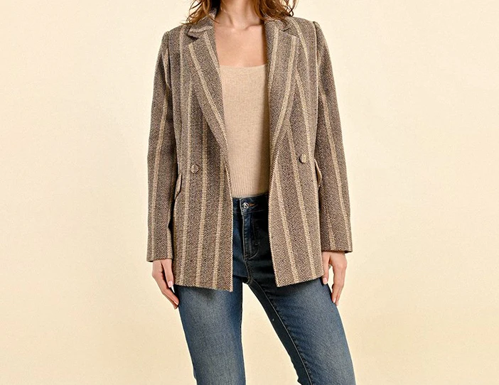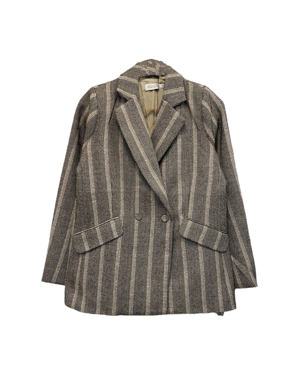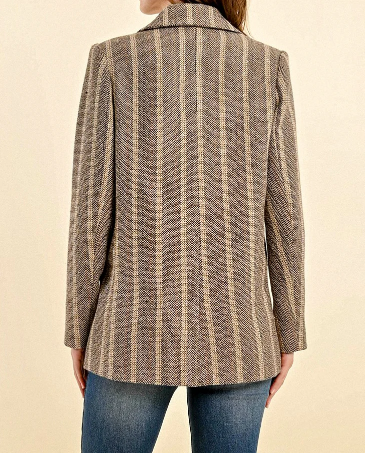 Giacca oversize in tessuto lavorato intrecciato. Inserti in filo in vari colori e lurex dorato. Collo con revers regolari, chiusura doppio petto con bottoni rivestiti. Capo foderato. Tasche laterali con pattina applicata.