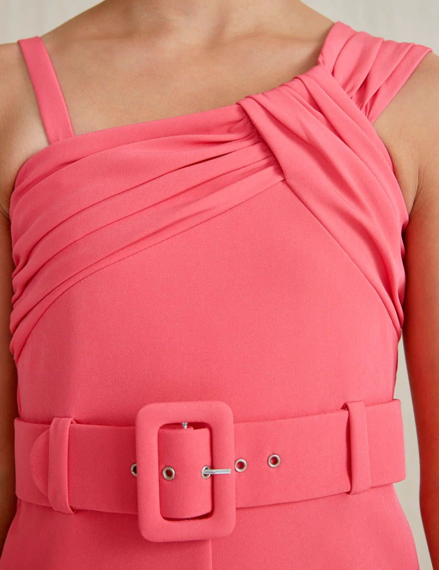 Tuta ABEL &amp LULA modello asimmetrico in tessuto con cintura regolabile chiusura zip a scomparsa sul retro tasche laterali.