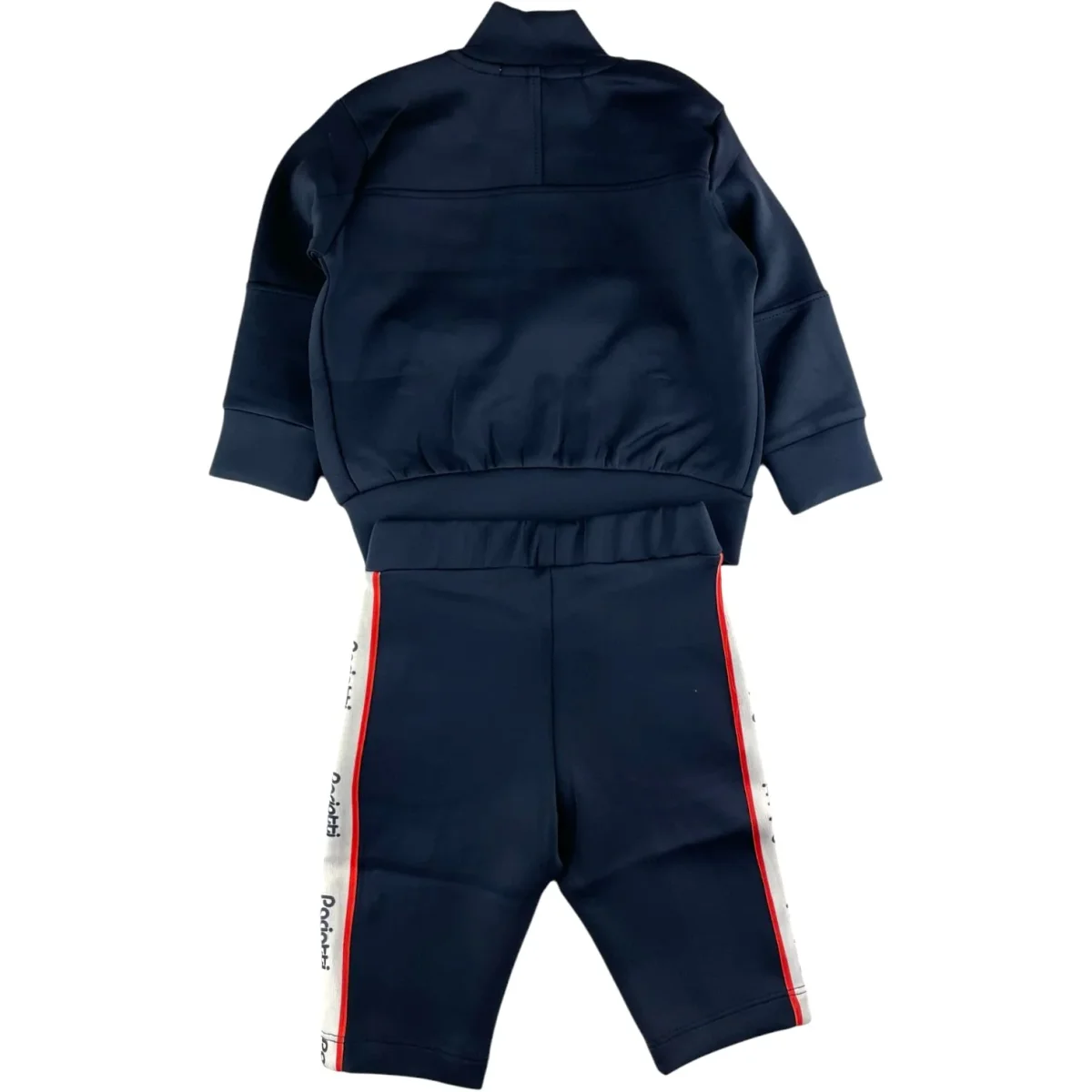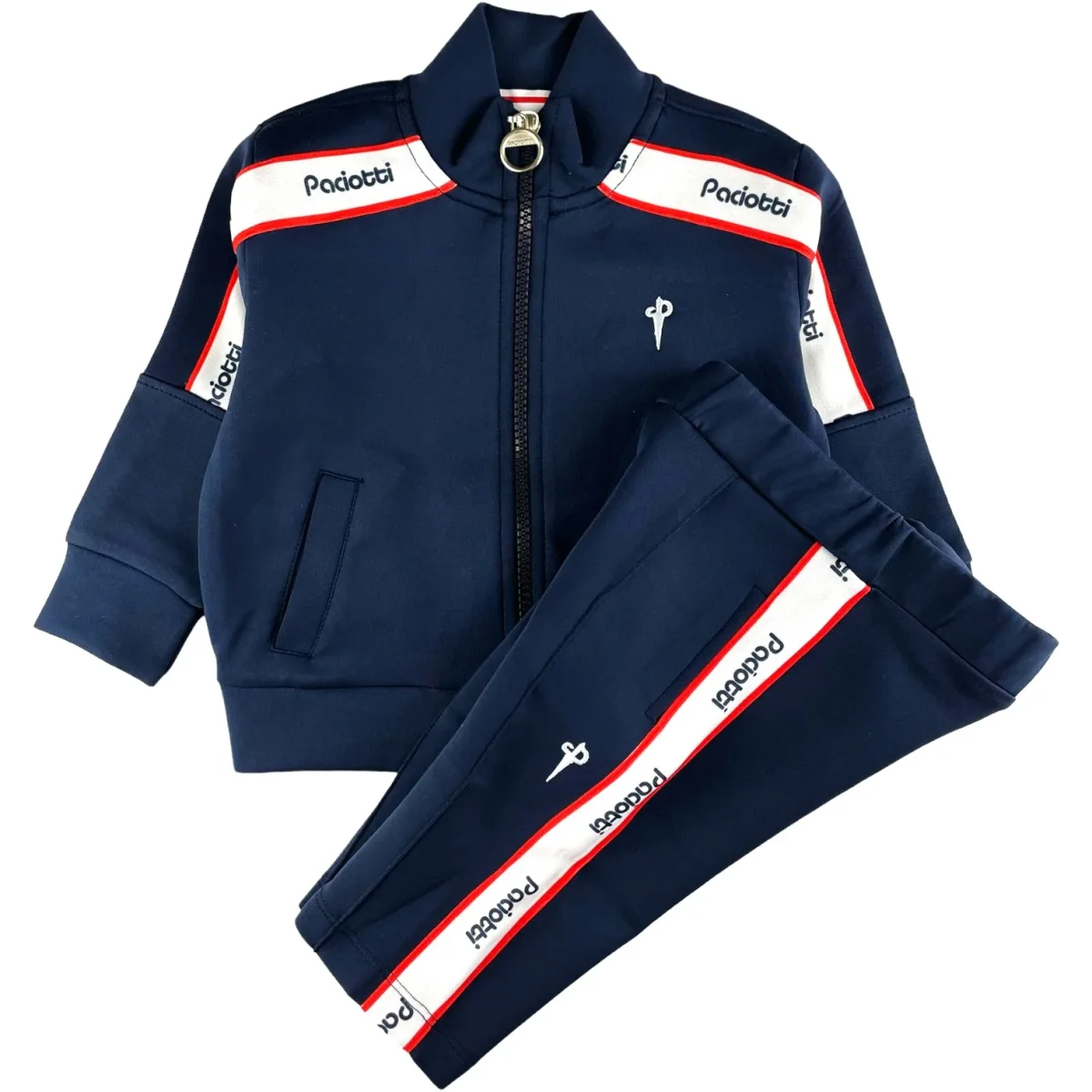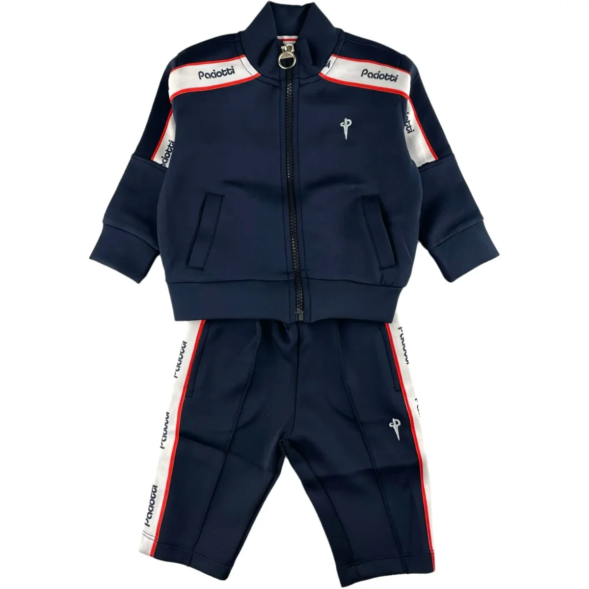 Tuta CESARE PACIOTTI composta da felpa chiusura zip intera con loghi paciotti a contrasto e pantalone coordinato. tessuto acetato.