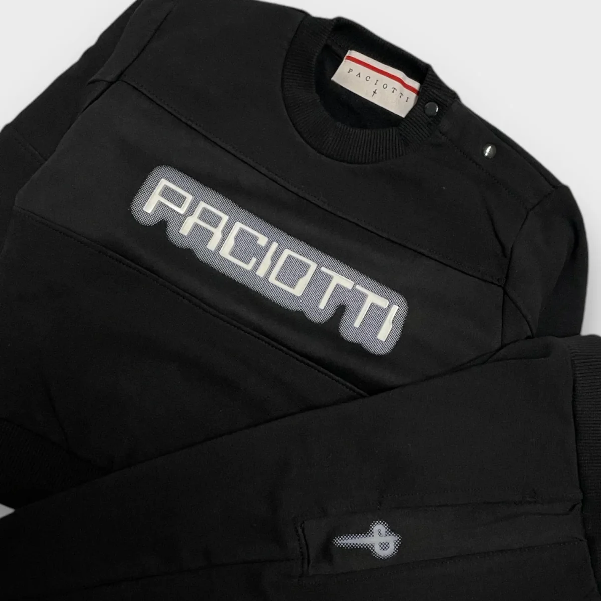 Tuta CESARE PACIOTTI con interno felpato, stampa logo a contrasto.