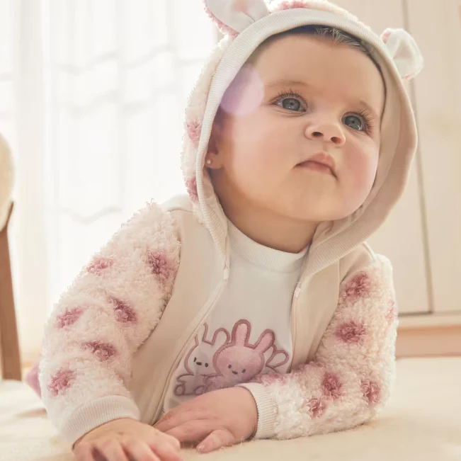 Completo MAYORAL composto da: felpa, t-shirt e pantalone coordinati. felpa in ecopelliccia con cappuccio, pantalone in felpa, t-shirt in cotone manica lunga.