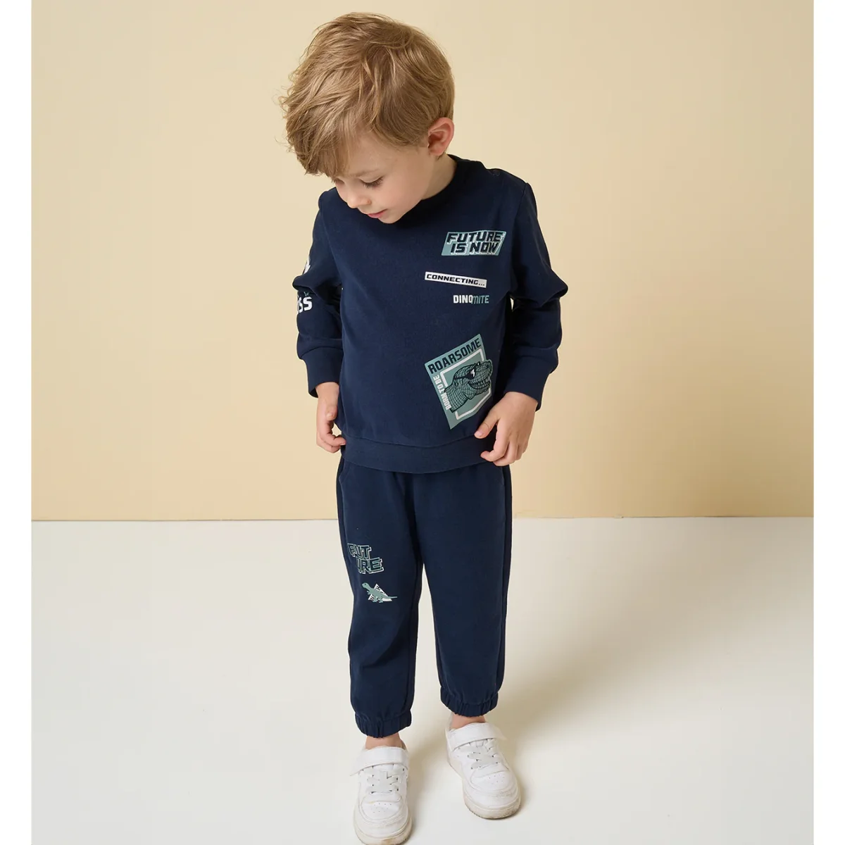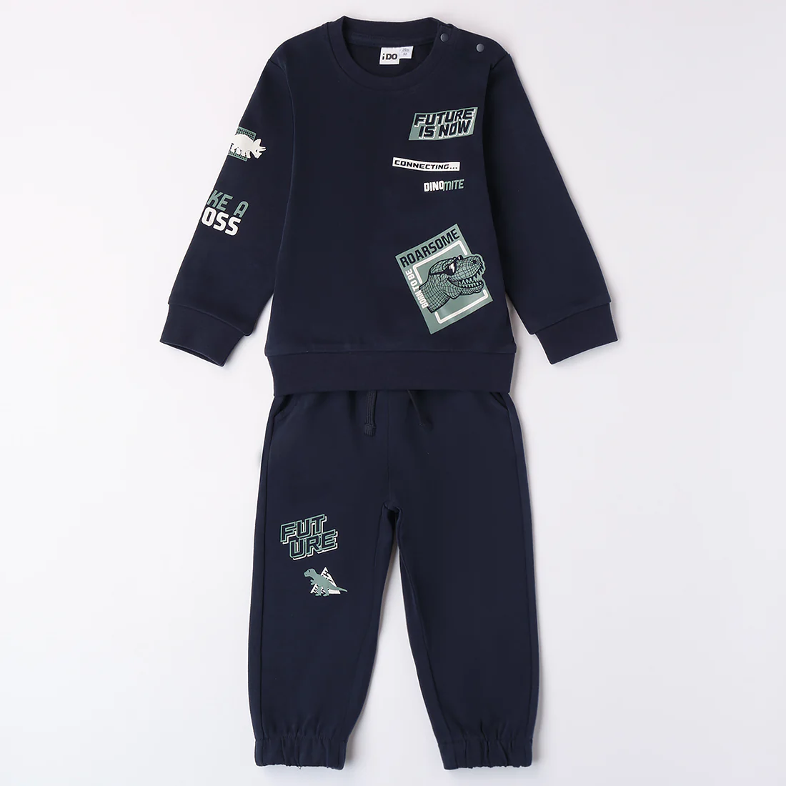 Tuta bambino i DO in felpa con interno felpato e stampe a contrasto.