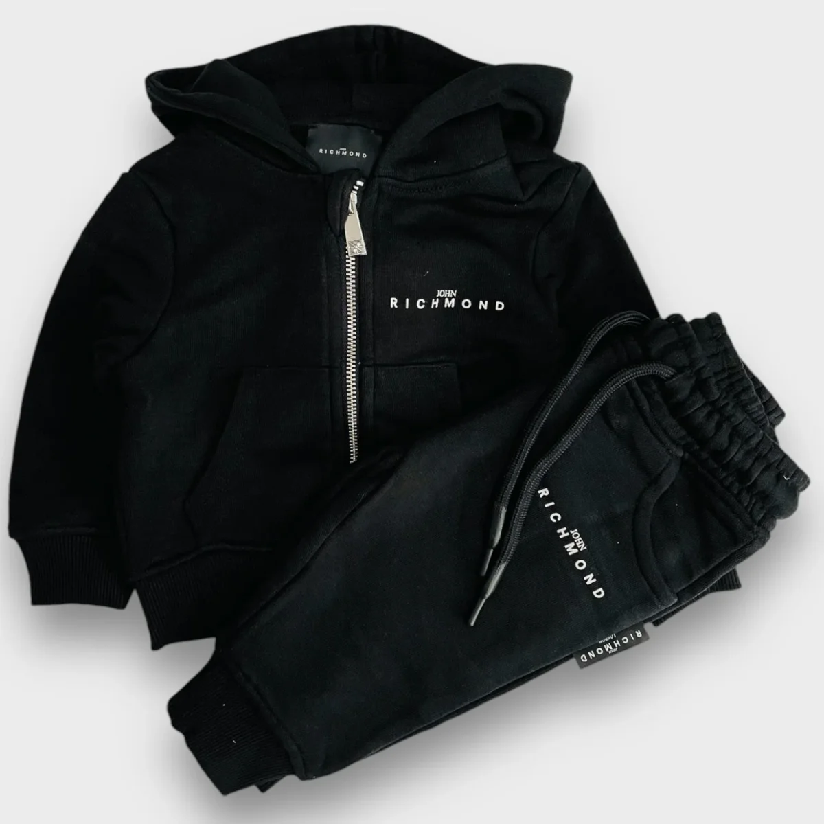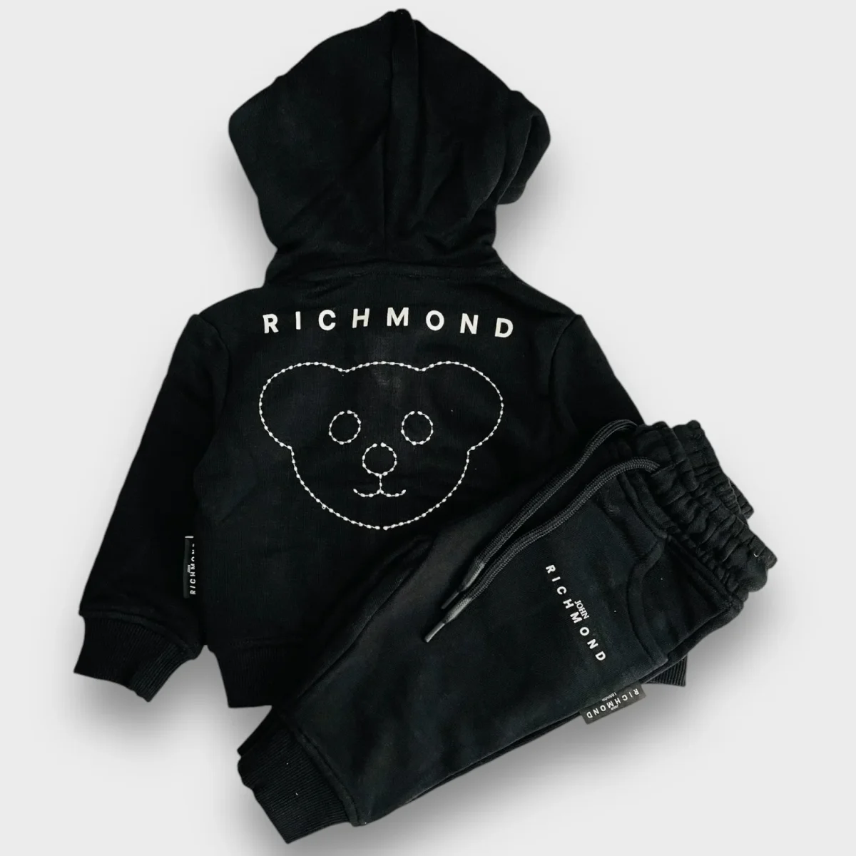 Tuta JOHN RICHMOND in cotone garzato, con ricamo sul retro. modello con cappuccio e chiusura zip intera.