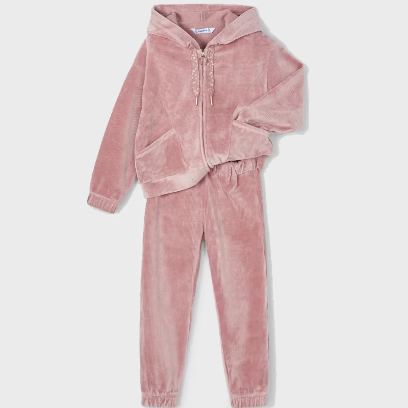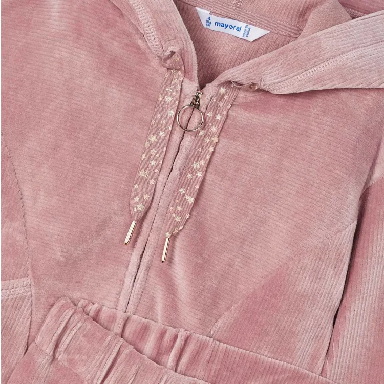 Tuta MAYORAL in ciniglia a costine, felpa con cappuccio e chiusura zip intera.