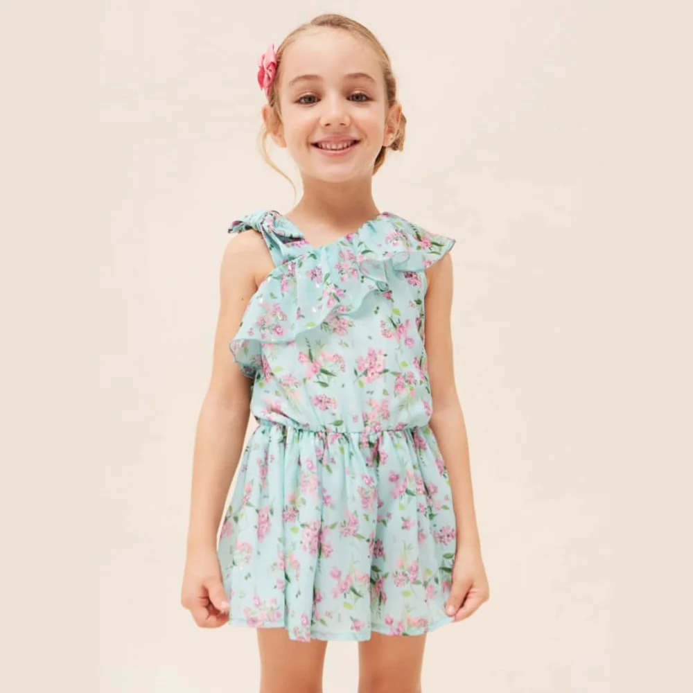 Tuta MAYORAL in tessuto fantasia floreale con inserto elastico in vita.