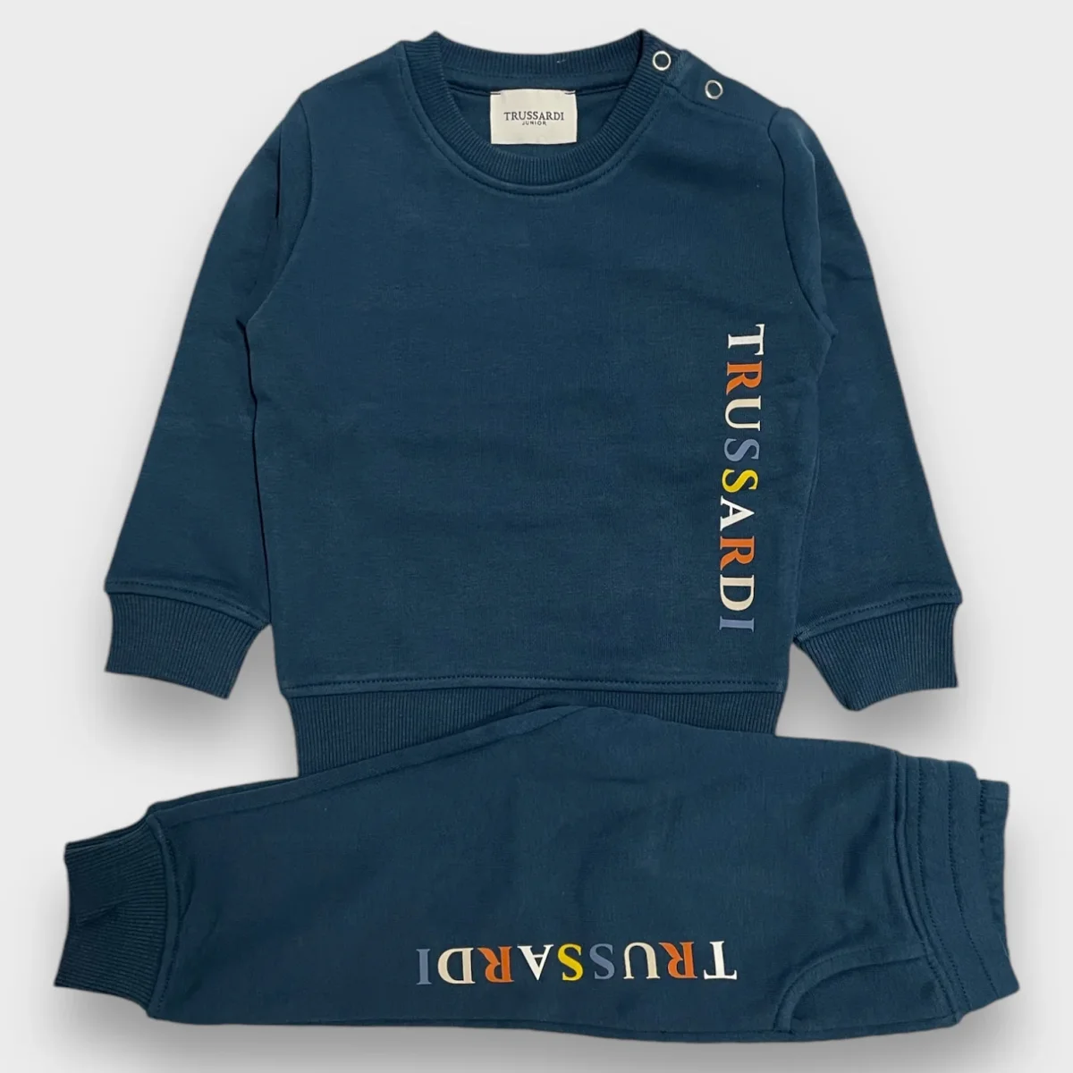 Tuta TRUSSARDI in cotone garzato con stampa logo multi color a contrasto.