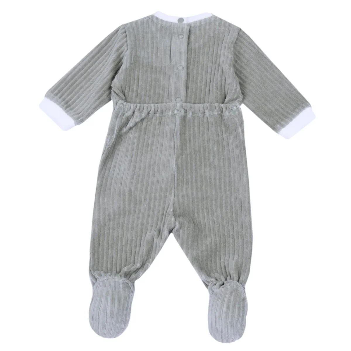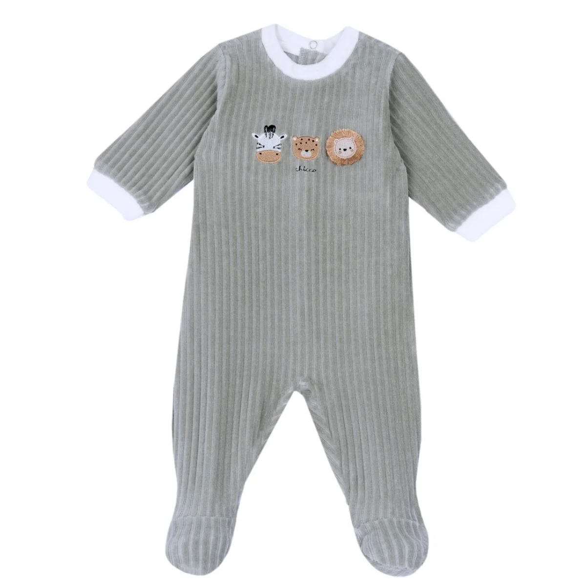 Tutina CHICCO in ciniglia a coste con chiusura con clips , animaletti ricamati.
