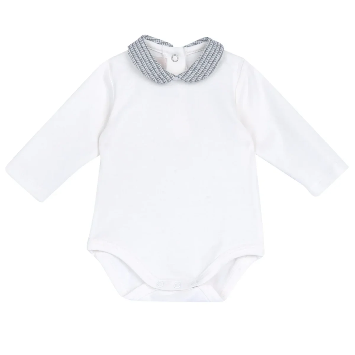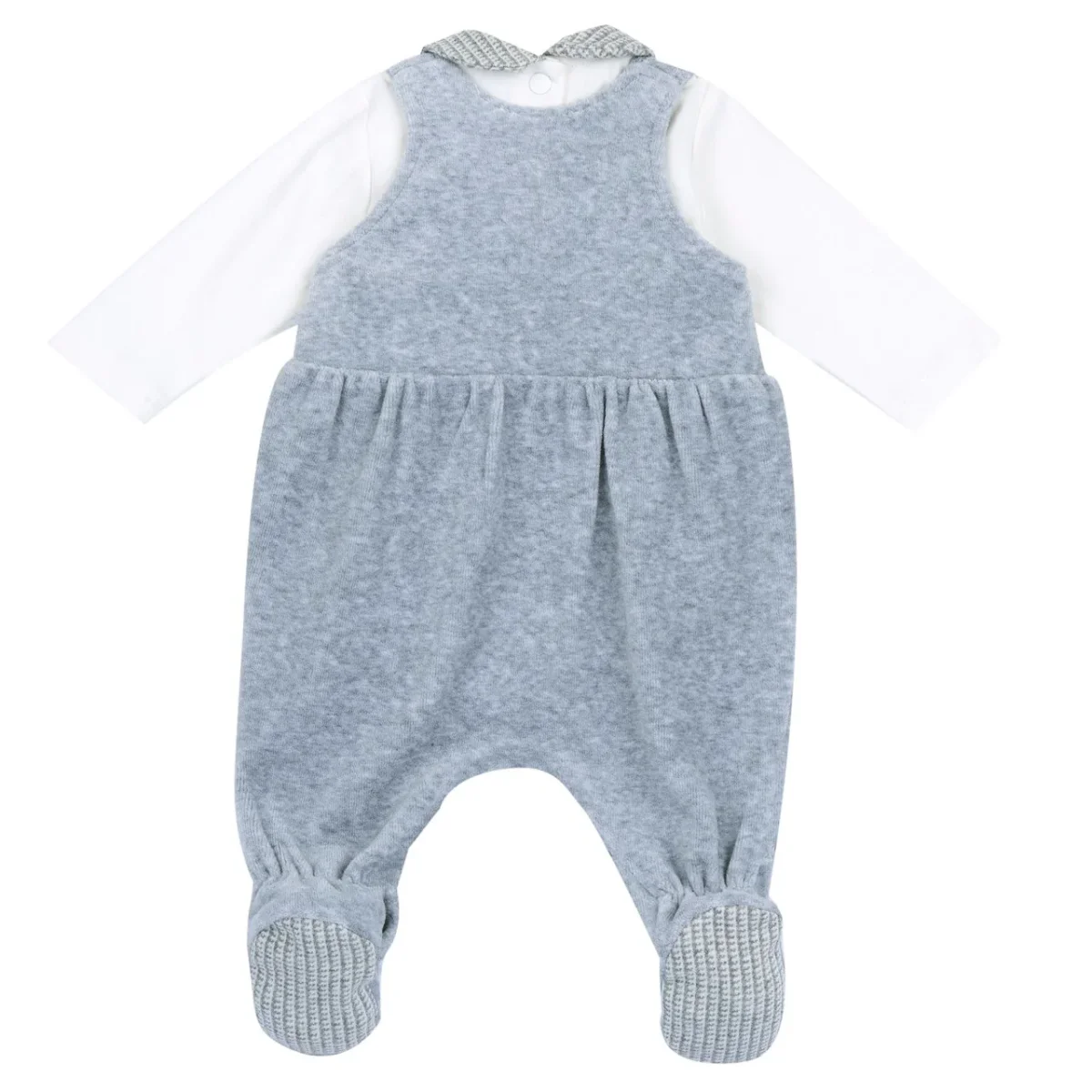Tutina CHICCO composta da salopette in ciniglia e body in caldo cotone con colletto a fantasia.