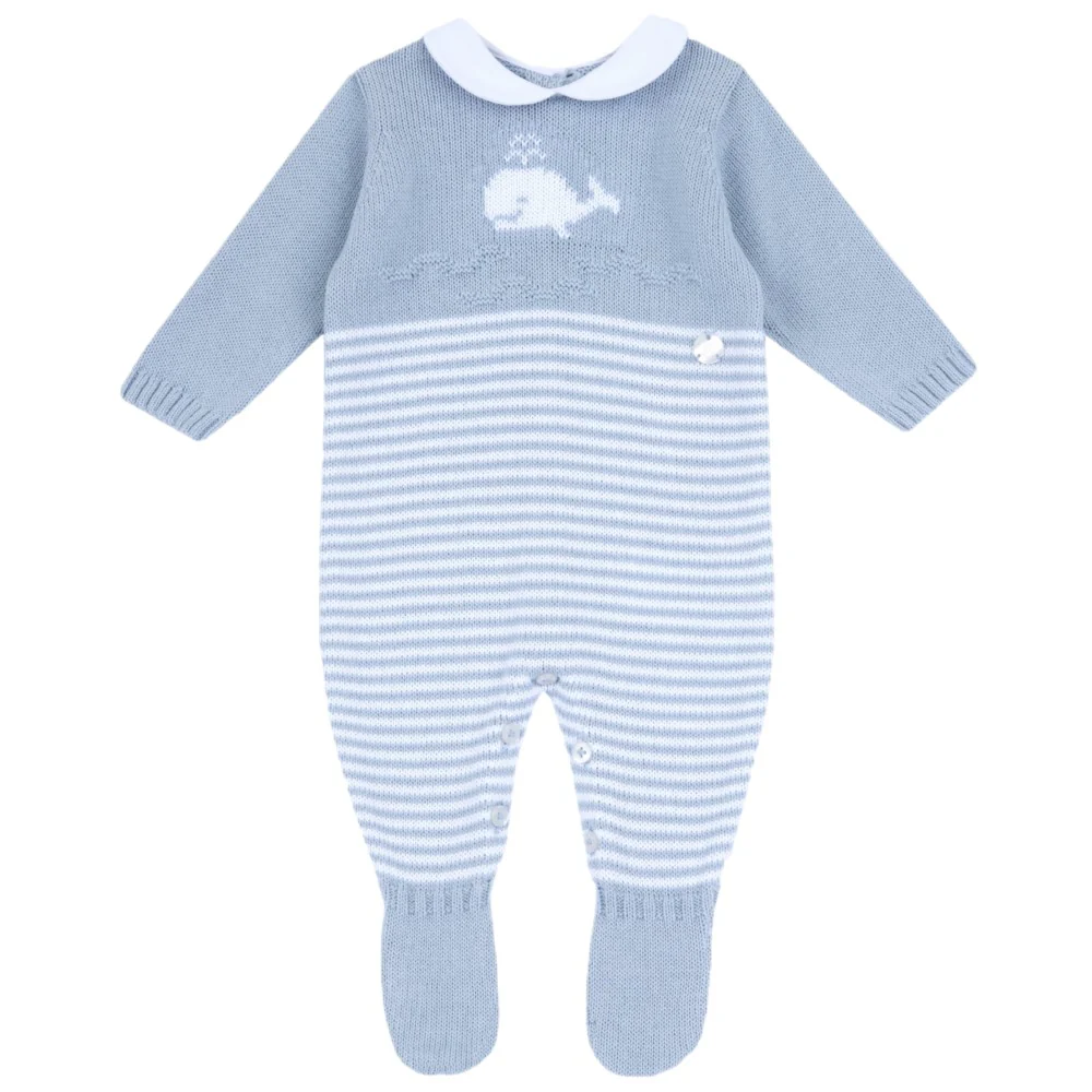 Tutina CHICCO in filo con colletto applicato in colore e tessuto a contrasto logo applicato a rilievo chiusura con bottoncini sul retro.