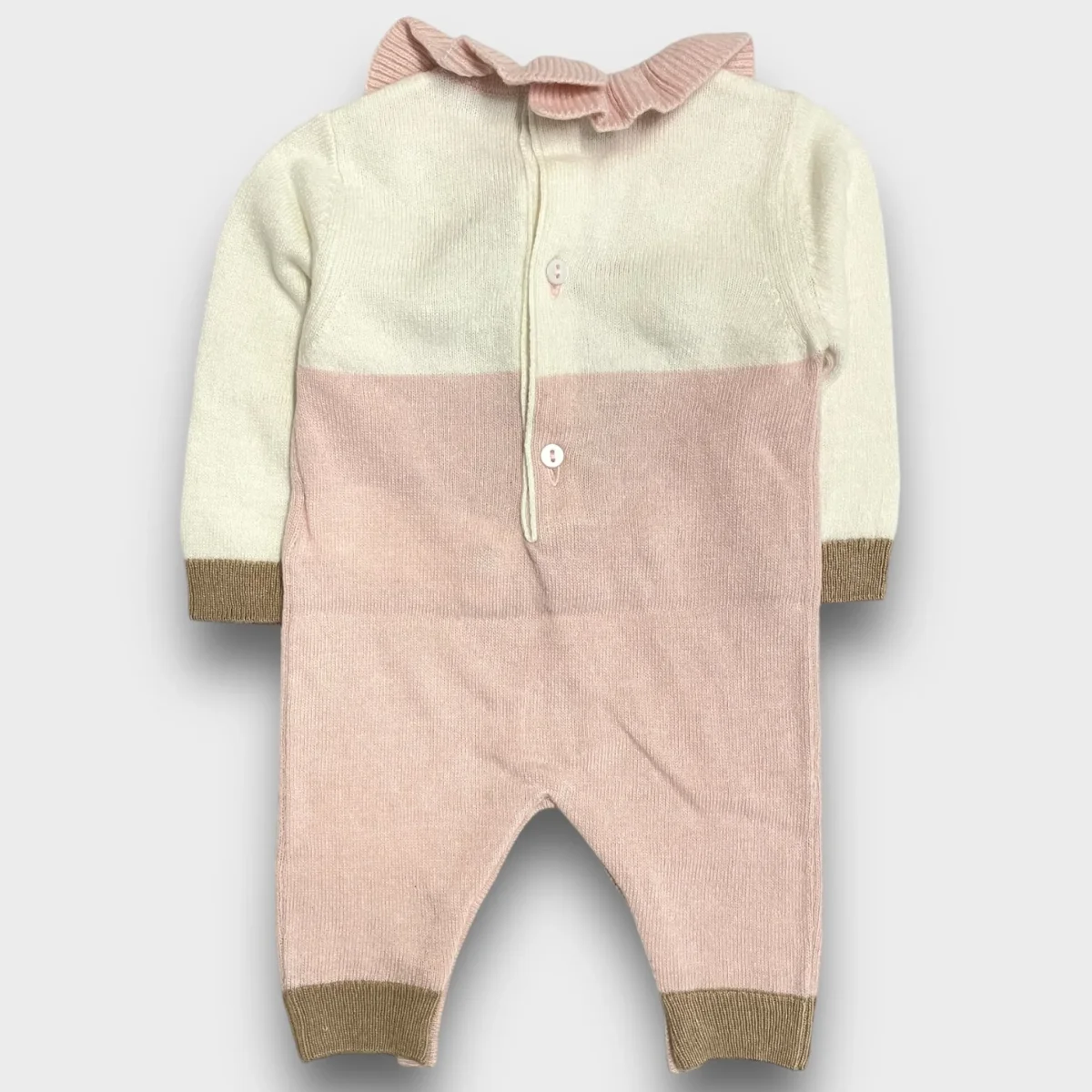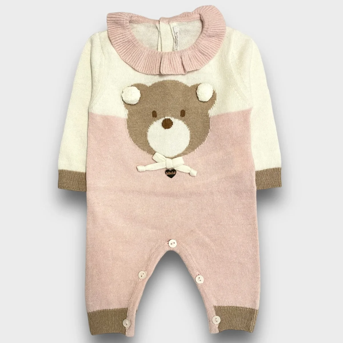 Tutina LE BEBE’ in misto lana merinos con orsetto nella trama, apertura sul retro.