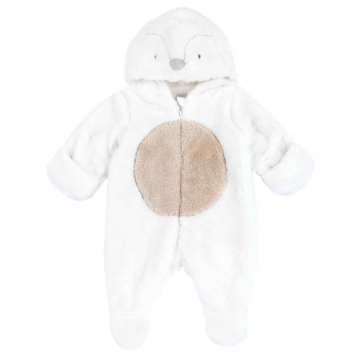 Tutone CHICCO in ecopelliccia foderato in ciniglia con inserto in colore a contrasto sulla parte anteriore, chiusura con zip, cappuccio applicato con ricami, coprimanine applicato risvoltabile.