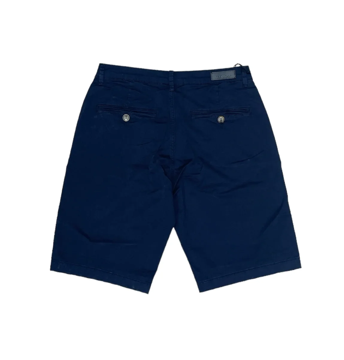 Bermuda basic in tessuto gabardine di cotone elasticizzato. Vita regolare con passanti, chiusura con zip e bottone. Tasche a filo laterali, taschine posteriori con bottone applicato. Lunghezza a metà gamba. Vestibilità regolare. COmposizione tessuto 97% cotone 3% elastan.