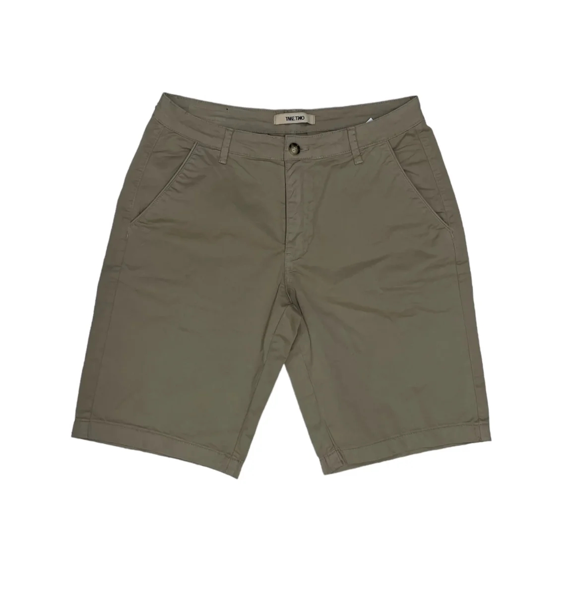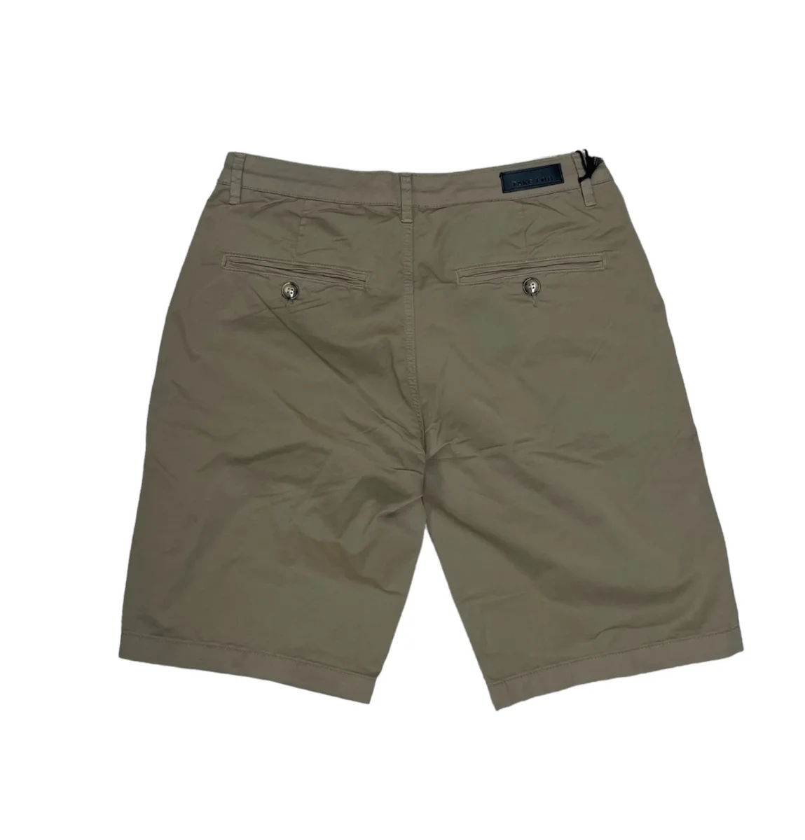 Bermuda basic in tessuto gabardine di cotone elasticizzato. Vita regolare con passanti, chiusura con zip e bottone. Tasche a filo laterali, taschine posteriori con bottone applicato. Lunghezza a metà gamba. Vestibilità regolare. COmposizione tessuto 97% cotone 3% elastan.