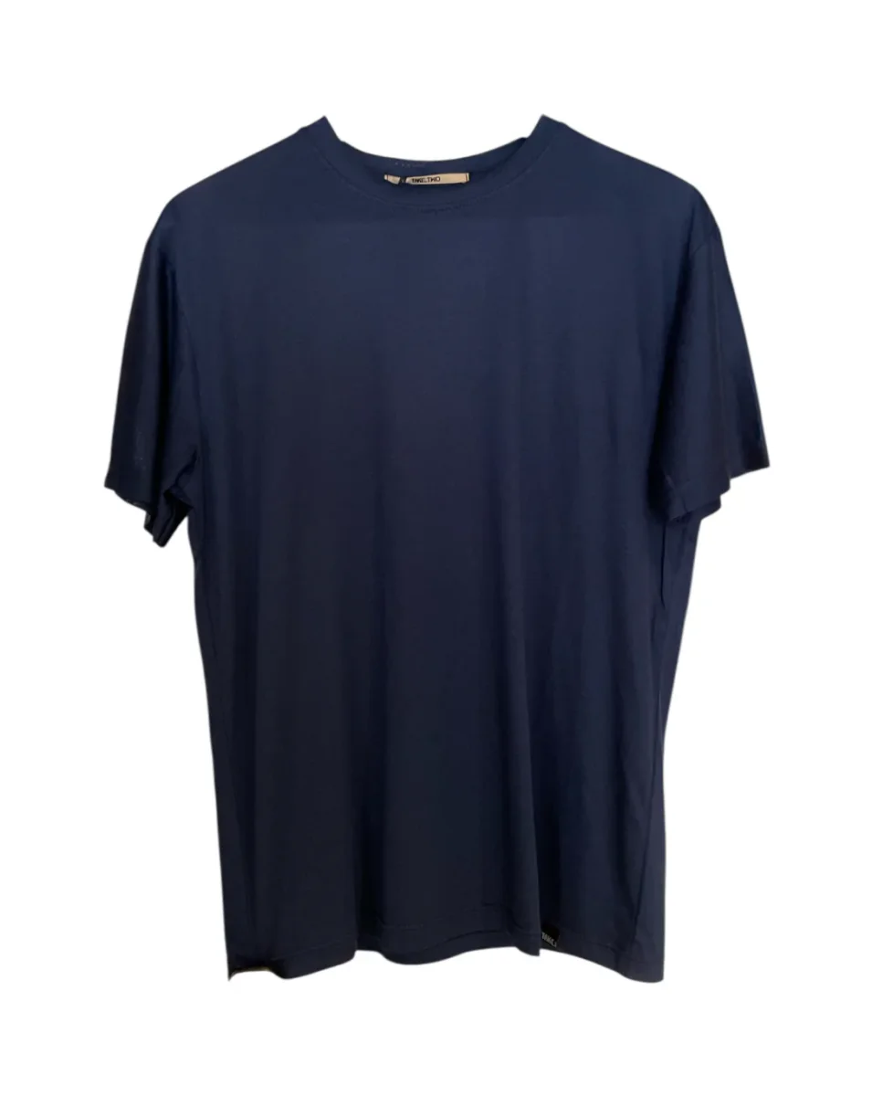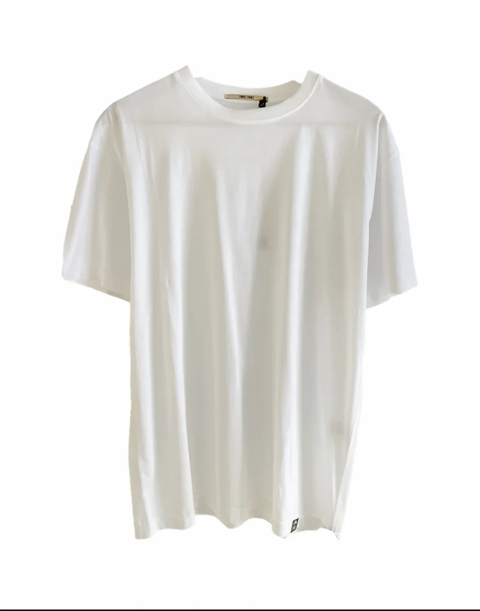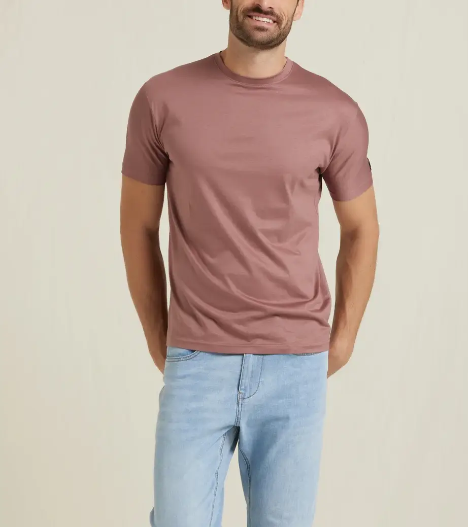 T-shirt basic in tessuto ultra leggero filo di scozia. Girocollo con bordo liscio, maniche corte. Logo brand cucito sul fondo. Vestibilità regolare. Composizione tessuto 50% cotone 50% modal.