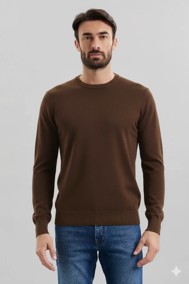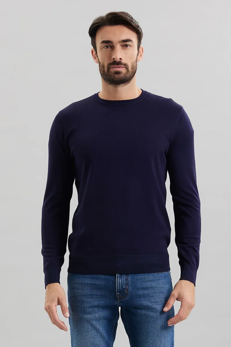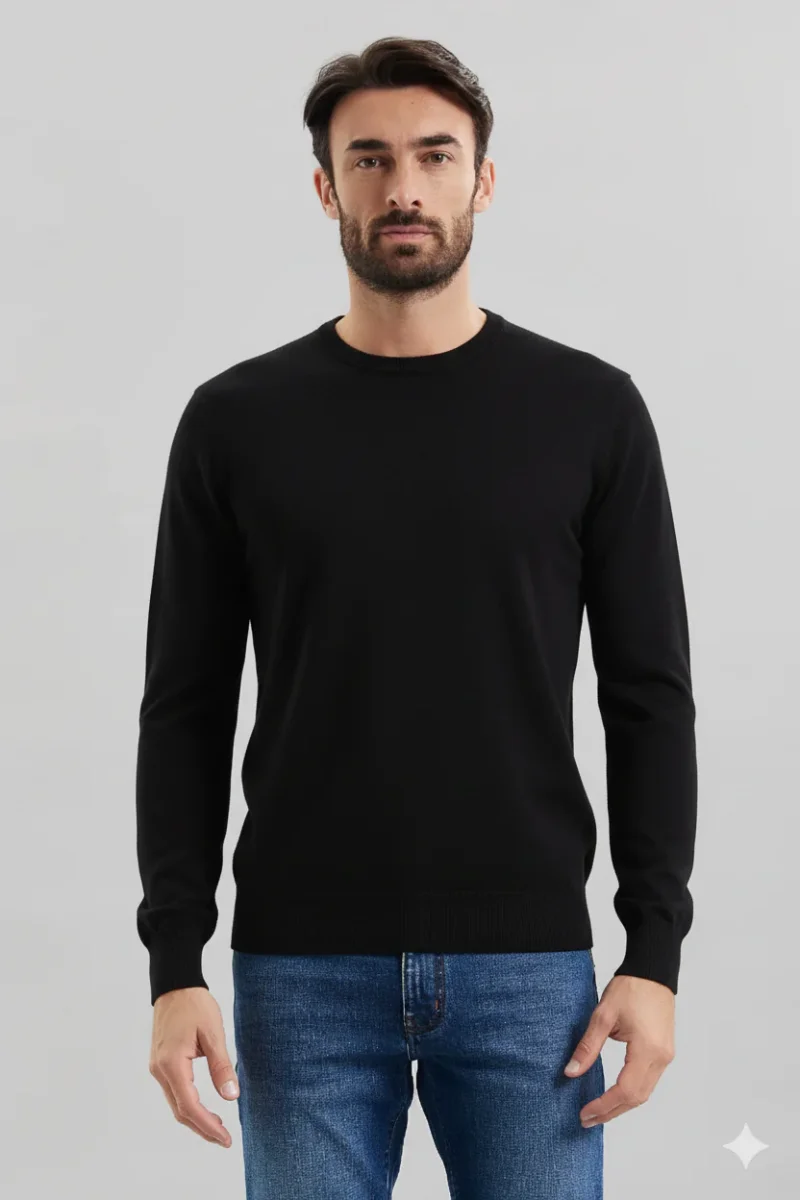 Maglia girocollo basica in tessuto elasticizzato misto viscosa. Girocollo regolare con bordo rifinito a canaletti. Maniche lunghe. Vestibilità regolare. Taglia in foto M. Composizione tessuto 80% viscosa 20% nylon.