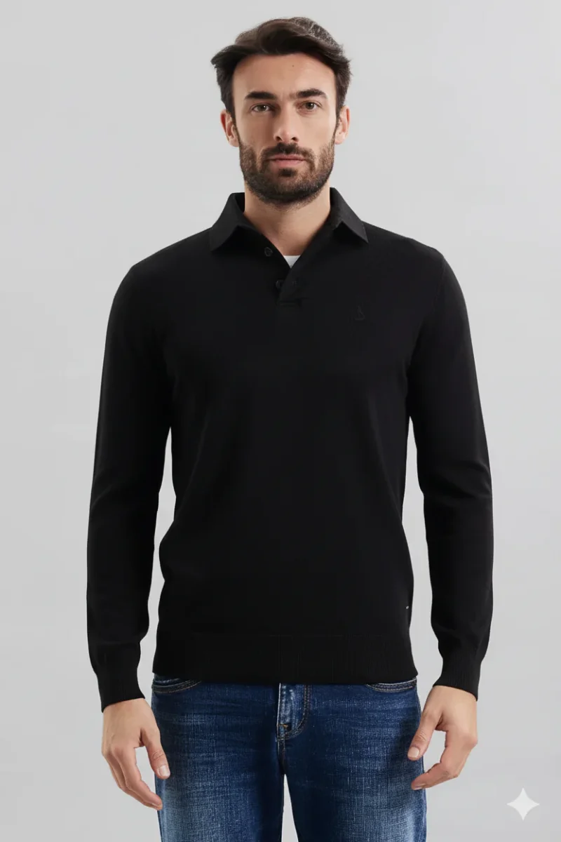 Polo sportiva basica in tessuto elasticizzato misto viscosa. Colletto piccolo, scollo con tre bottoni. Logo brand sul petto. Maniche lunghe. Fondo e polsini rifiniti a canaletti. Vestibilità regolare. Composizione tessuto 80% viscosa 20% nylon.