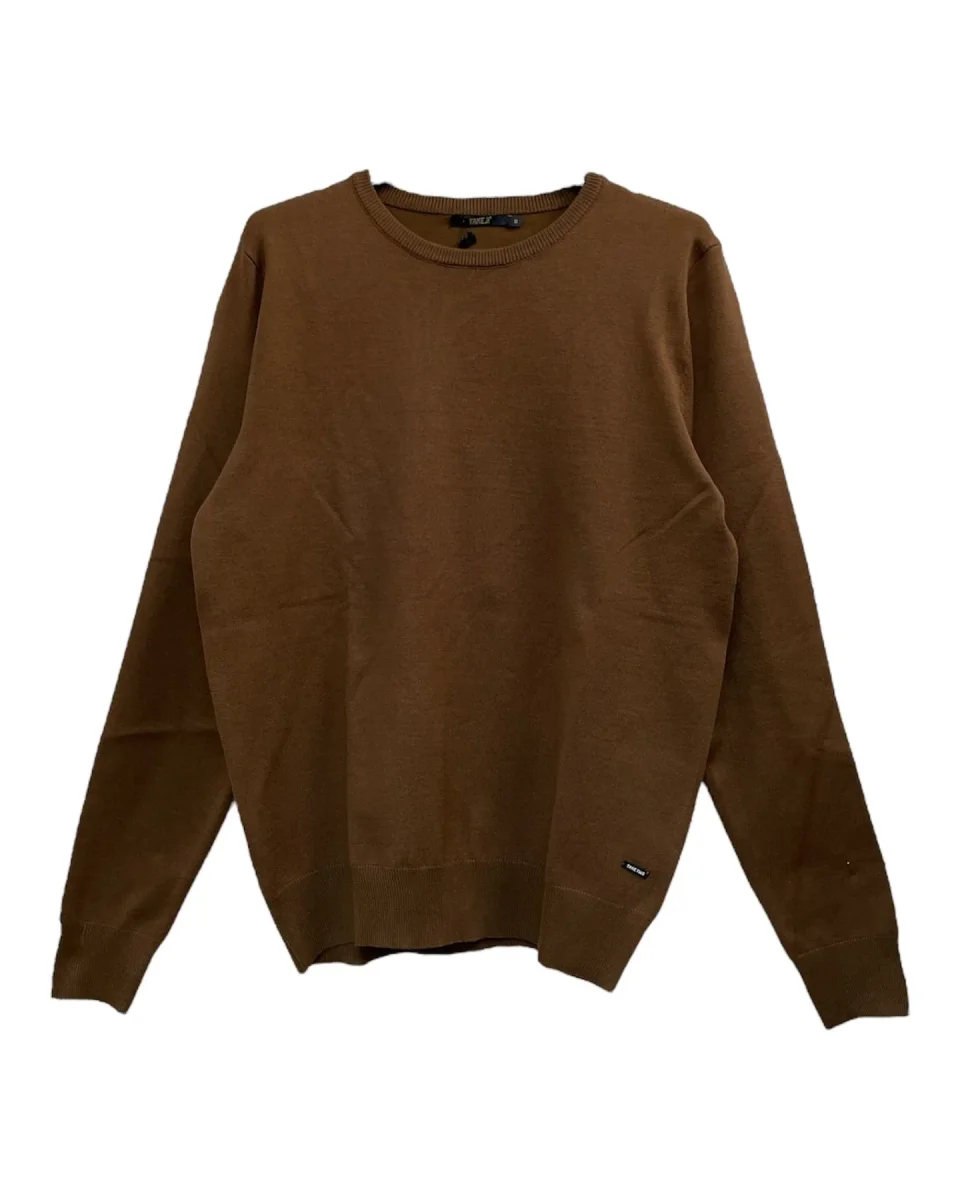 Maglia basica girocollo in tessuto misto viscosa primo peso. Girocollo regolare, bordi rifiniti a costine. Maniche lunghe, logo brand cucito sul lato. Vestibilità regolare. Tessuto 80% viscosa 20% nylon