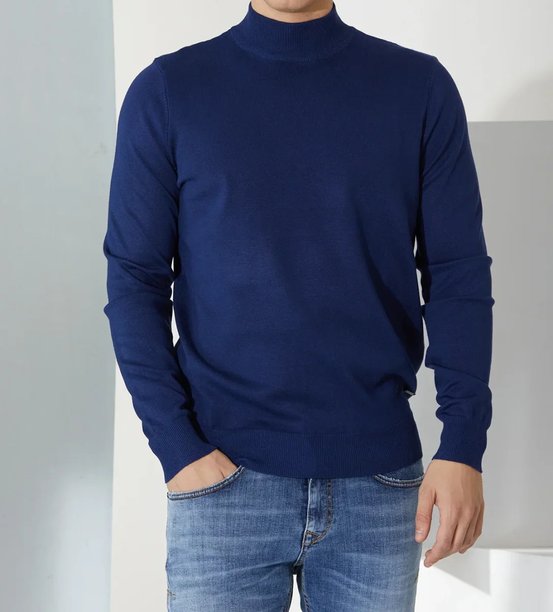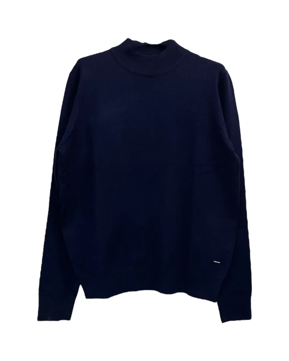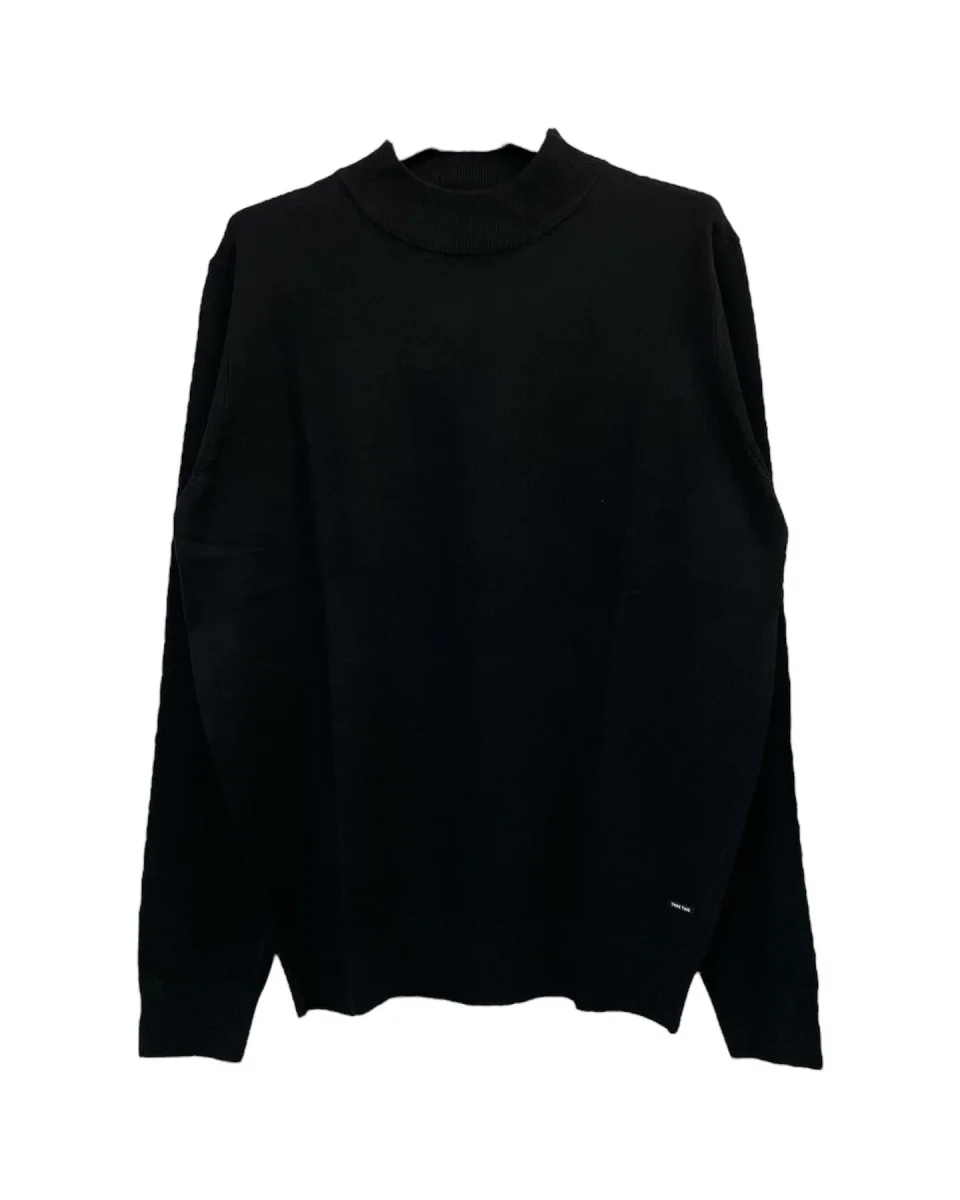 Maglia basica in tessuto misto viscosa. Collo lupetto rifinito a canaletti. Maniche lunghe. Logo brand cucito sul fondo. Bordi rifiniti a canaletti. Vestibilità slim. Composizione tessuto 80% viscosa 20% nylon