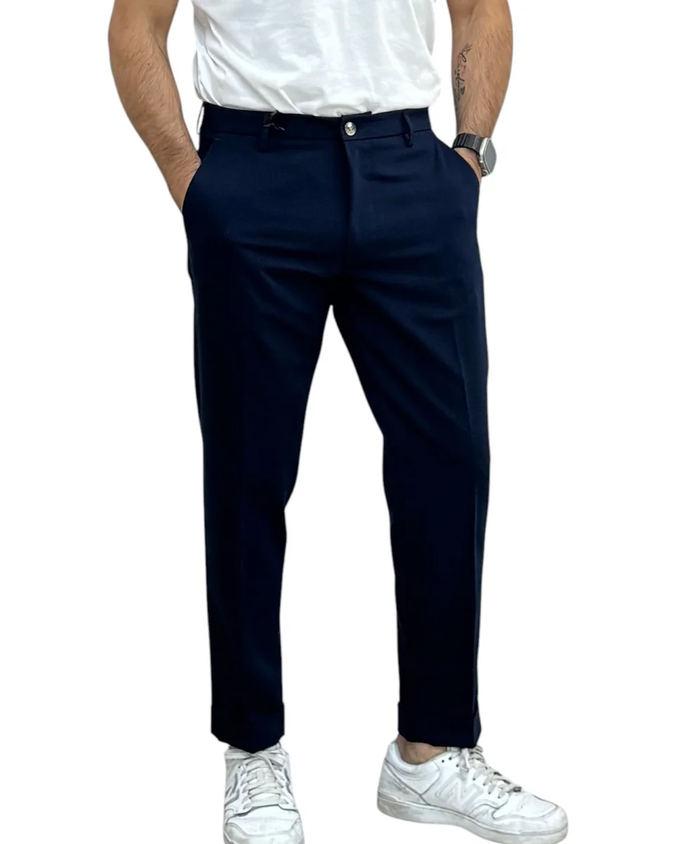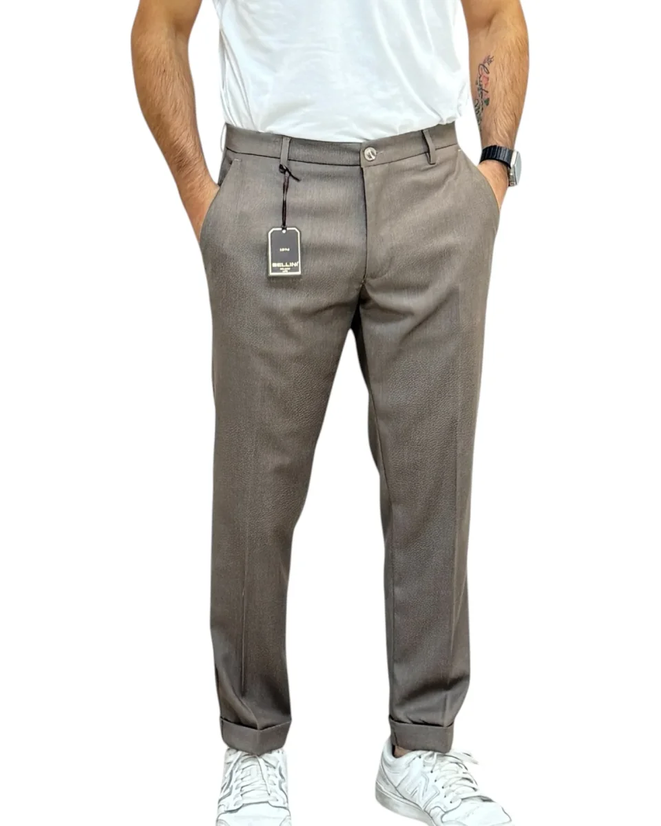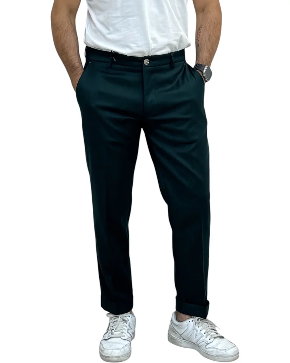 Il nostro pantalone più venduto ora disponibile nella versione invernale. Vita regolare, cinturino fisso con passanti, chiusura con zip e bottone. Tasche a filo laterali, tasche a filetto posteriori. Gamba slim asciutta e fondo stretto con piega con risvolto. Un pantalone adatto ad ogni occasione e ad ogni outfit. Taglia in foto 46. Composizione tessuto 63% poliestere 24% viscosa 13% lana.