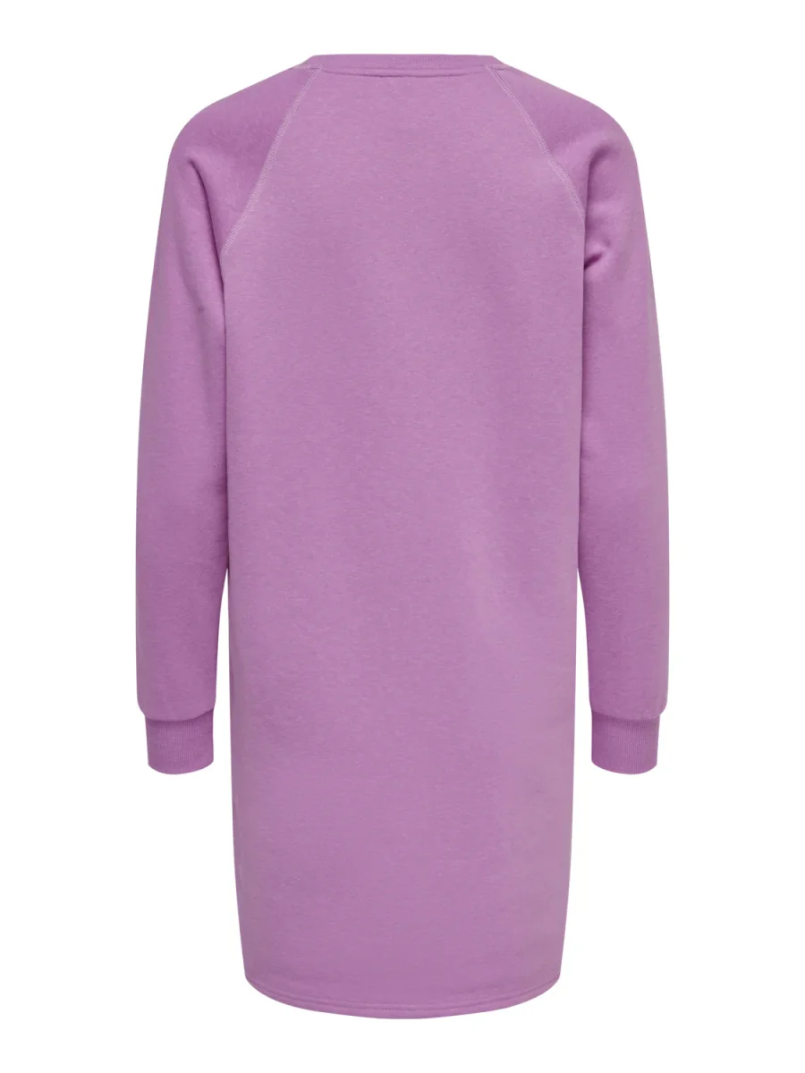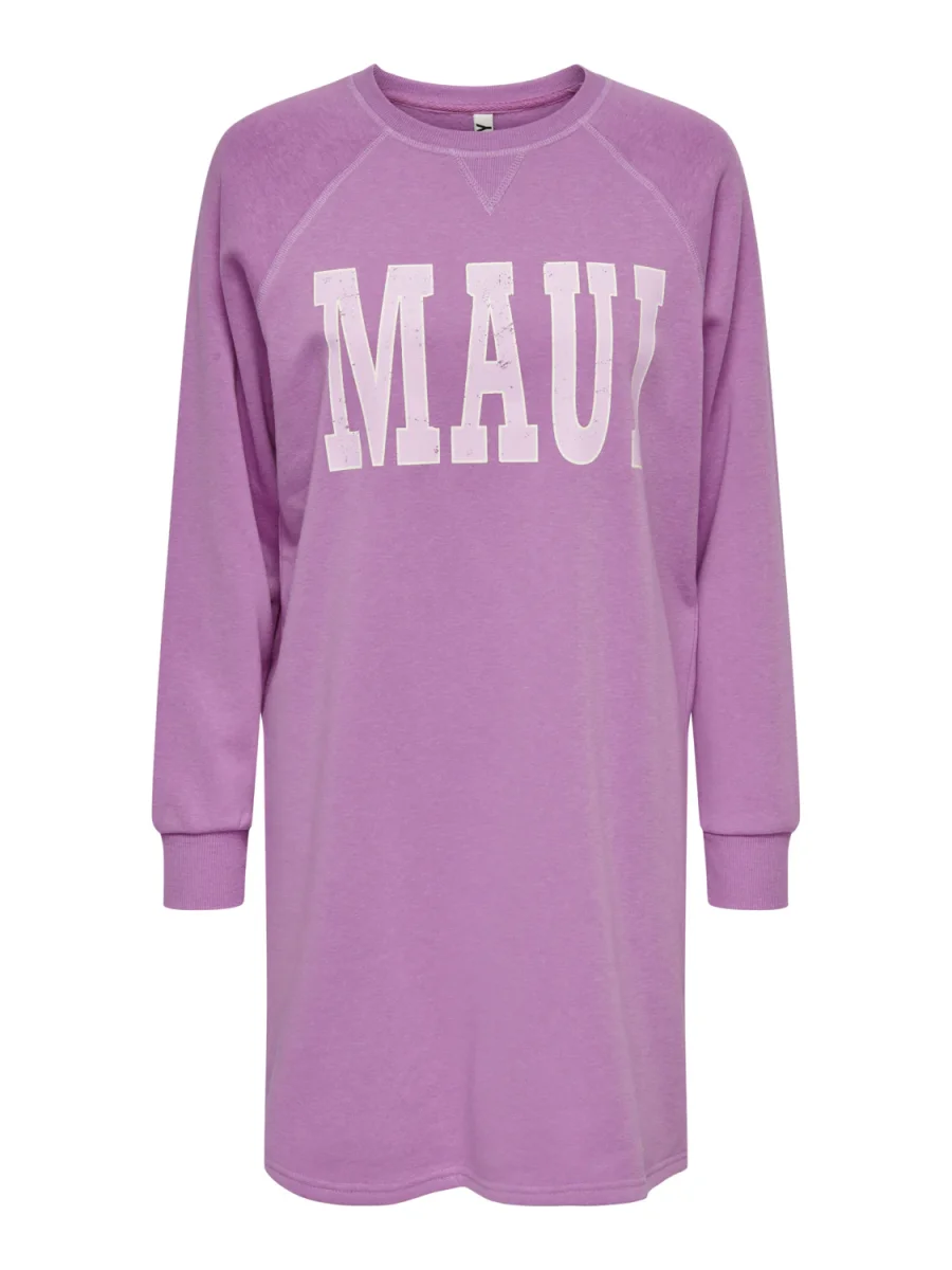 Vestito modello felpa lungo al ginocchio. Girocollo con bordo liscio, polsini elastici e fondo dritto. Vestiblità comoda. Stampa in tessuto gommato sul davanti. Composizione tessuto 65% poliestere 35% cotone.