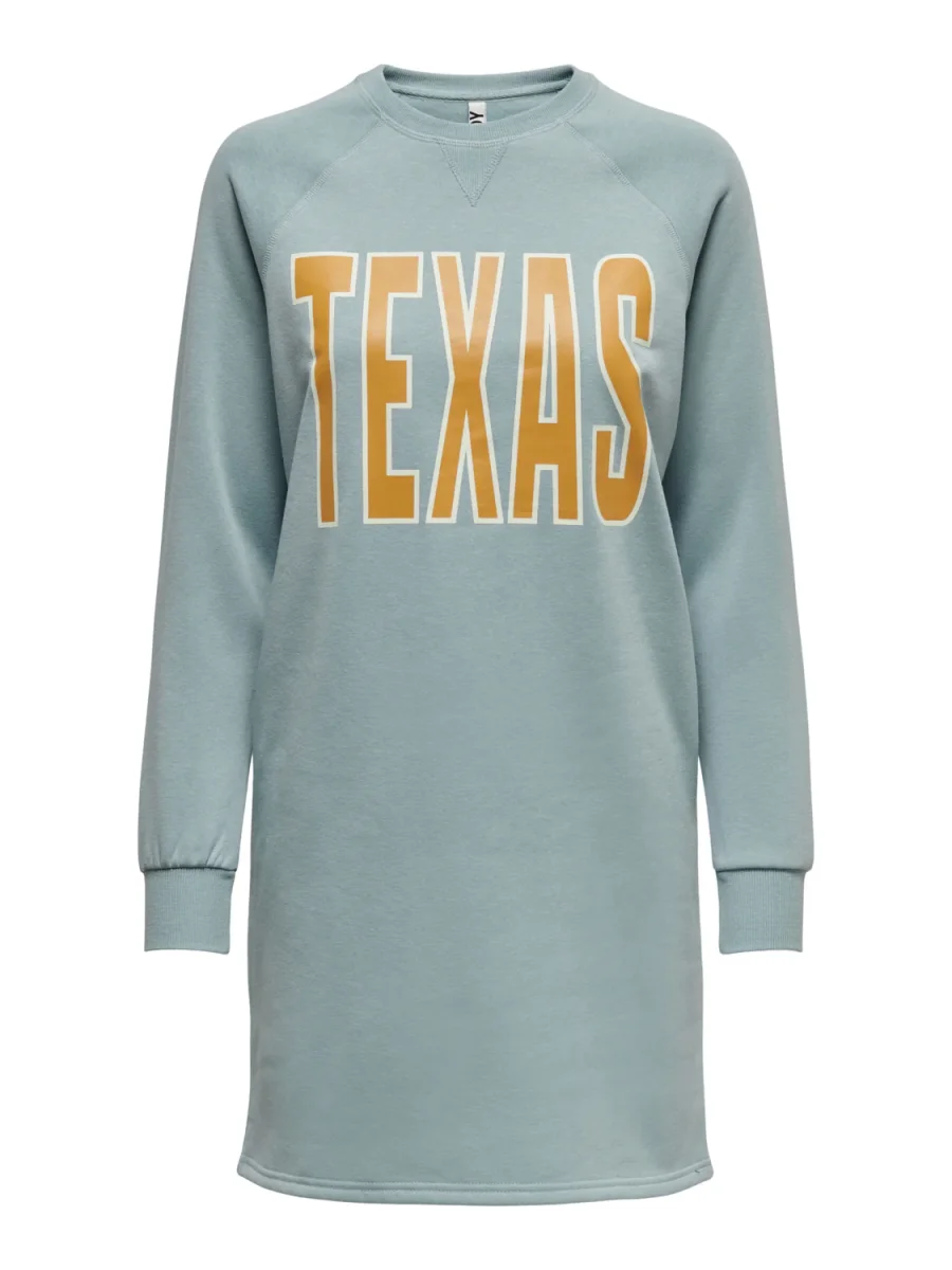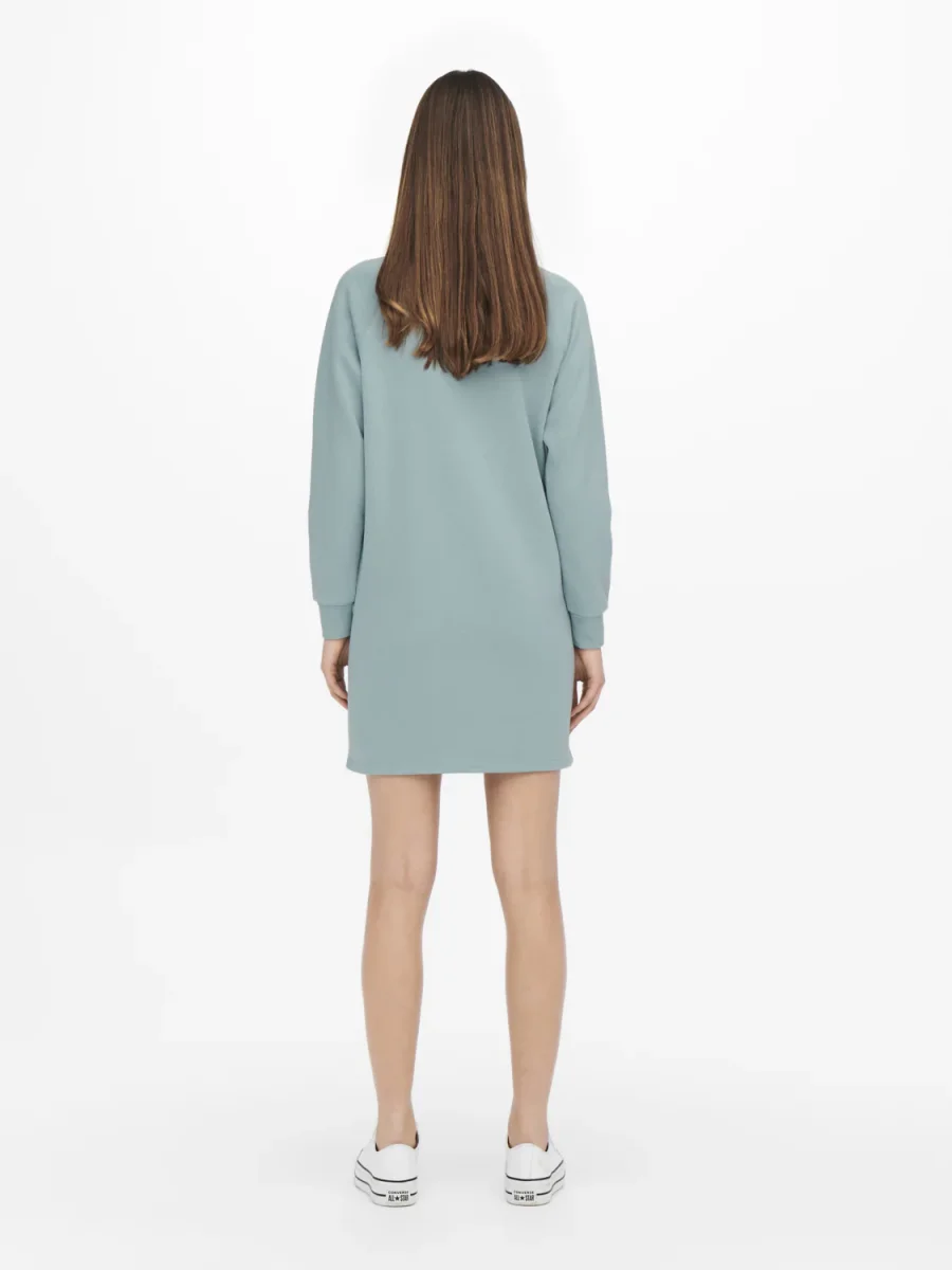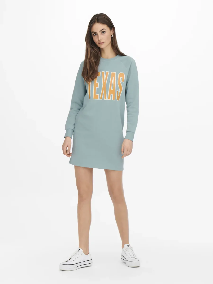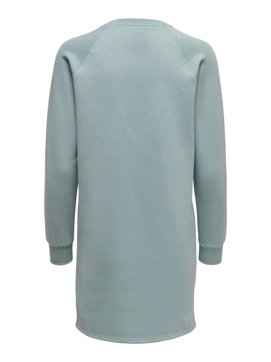 Vestito modello felpa lungo al ginocchio. Girocollo con bordo liscio, polsini elastici e fondo dritto. Vestiblità comoda. Stampa in tessuto gommato sul davanti. Composizione tessuto 65% poliestere 35% cotone.