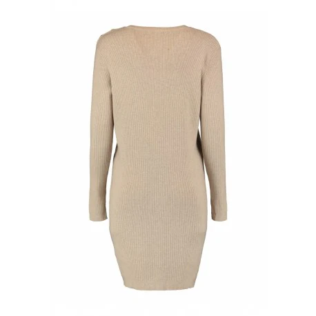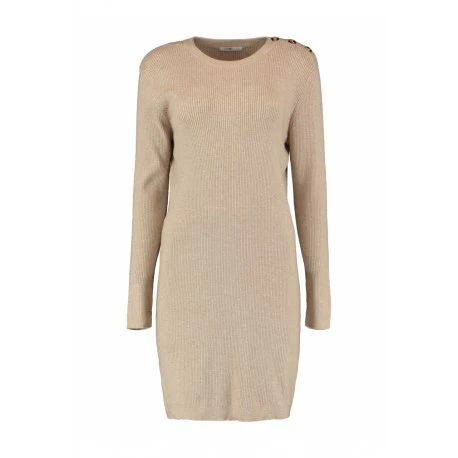 Vestito in tessuto maglina elasticizzata misto viscosa. Girocollo regolate con bordo rifinito a canaletti e bottoni decorativi su una spalla. Vestibilità aderente. Tessuto rifinito a costine. Composizione tessuto 49% viscosa 30% poliestere 21% poliammide.